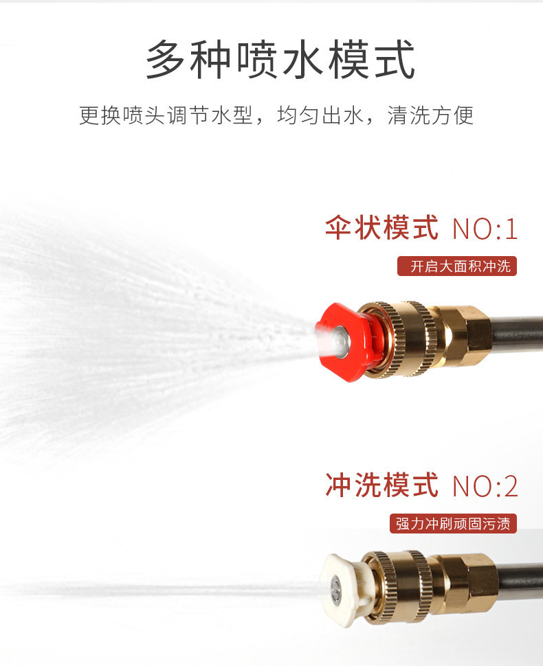 - Máy đi kèm nhiều loại đầu phun, cho phép bạn dễ dàng chuyển đổi giữa các chế độ phun nước khác nhau như phun tỏa rộng để rửa xe hay phun mạnh tập trung để loại bỏ các vết bẩn cứng đầu.