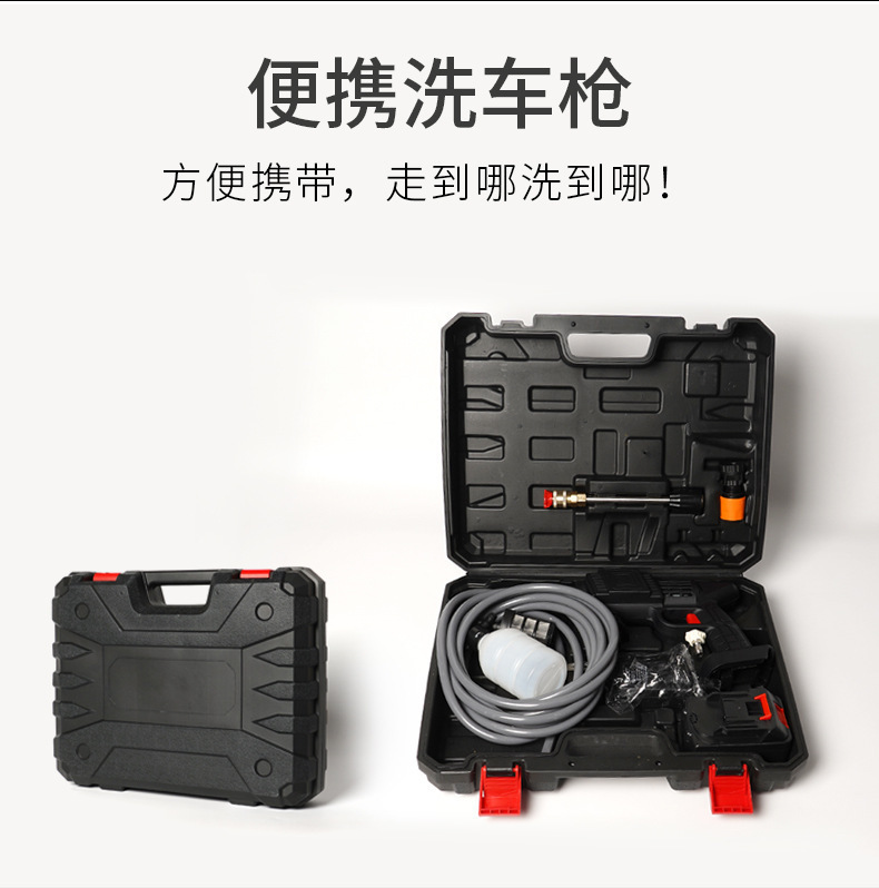 - Máy rửa xe cầm tay có thiết kế nhỏ gọn, đi kèm hộp đựng chuyên dụng, tiện lợi cho việc di chuyển và cất giữ. Bạn có thể dễ dàng mang theo khi đi du lịch hoặc sử dụng để làm sạch các khu vực khác ngoài xe hơi.