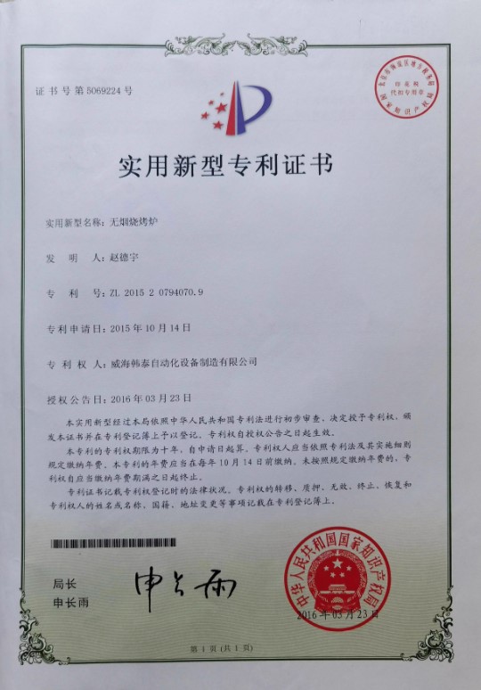 Lò nướng BBQ bằng điện này được cấp bằng sáng chế cấp quốc gia của Trung Quốc. Có thể tự tiêu khói lên đến 89%