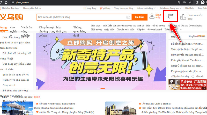 Bước 1: Truy cập vào trang Yiwugo