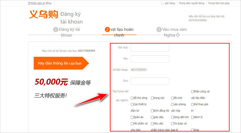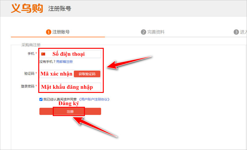 Cách 1: Tạo tài khoản Yiwugo theo số điện thoại Trung Quốc