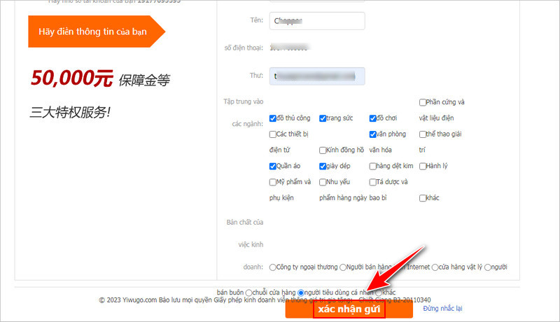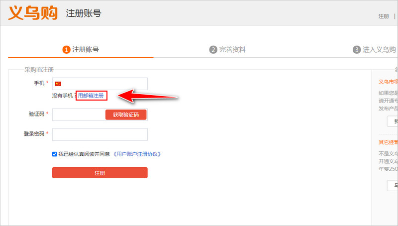 Yiwugo cho phép đăng ký bằng số điện thoại bên Trung Quốc hoặc email. Tùy nhu cầu mà bạn chọn cách đăng ký khác nhau.